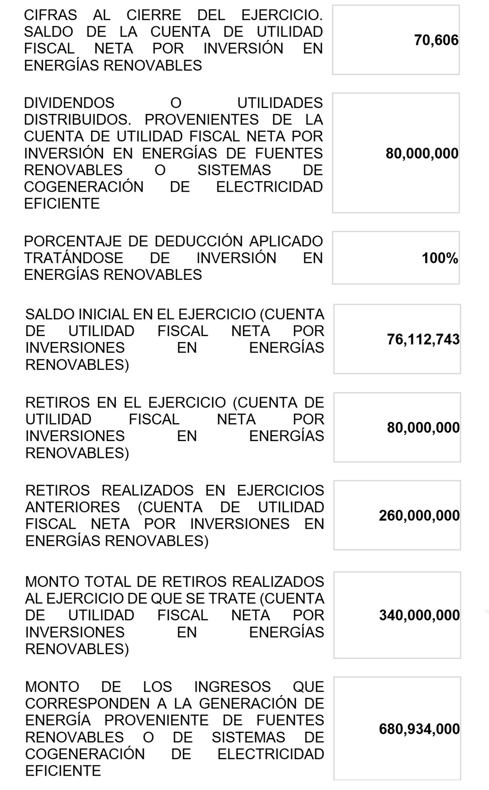 Específicamente, el artículo 77-A de la Ley del Impuesto sobre la Renta (LISR) establece que las personas morales que se dediquen exclusivamente a la generación de energía proveniente de fuentes renovables o de sistemas de cogeneración de electricidad eficiente podrán crear una Cufinier. Esta cuenta se calculará de acuerdo con las disposiciones del artículo 77.° de la LISR, en los mismos términos que la Cuenta de Utilidad Fiscal Neta (Cufin), pero con una particularidad: en lugar de determinarse la utilidad fiscal neta del ejercicio (Ufin), se adicionará la utilidad derivada de las inversiones en energías renovables (Ufinier).