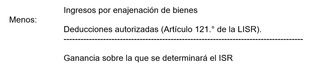 Como se mencionó, en correspondencia con el artículo 121.° de la LISR, las personas físicas que obtengan ingresos por la enajenación de bienes tendrán la posibilidad de efectuar las siguientes deducciones: