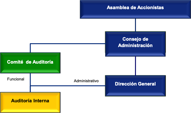 La línea de reporte del responsable de auditoría interna se divide (atendiendo a una estructura de gobierno con un Comité de Auditoría) en dos líneas: por un lado, a nivel de sus actividades administrativas, entendiendo que en paralelo es su cliente interno principal, de manera directa, el CEO de la organización. Por otro lado, en cuanto a sus actividades funcionales como auditor interno, debe ser obligadamente hacia el Comité de Auditoría, dependencia que respalda la independencia, elemento fundamental que permitirá que, en aquellas asignaciones o proyectos en los que participe, evite cualquier posible influencia por parte de cualquier dirección operativa y emita opiniones imparciales y ajenas a cualquier presión. Por “operativo” nos referimos a cualquier directivo que reporte directamente al CEO.