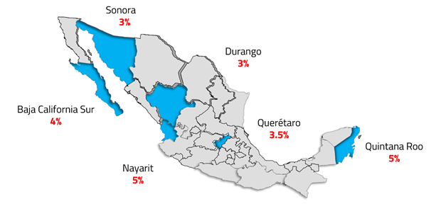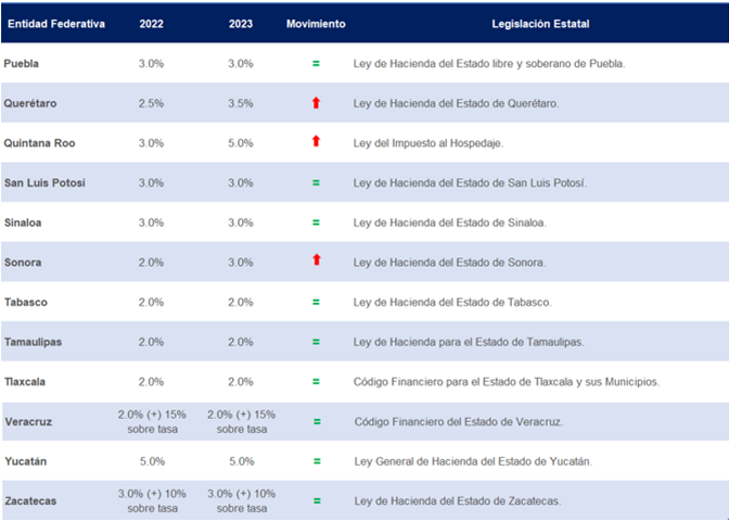 Para 2023, algunos estados de la República Mexicana modifican su tasa para la determinación del impuesto: