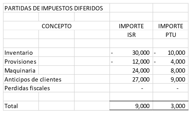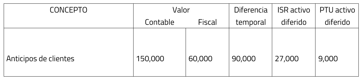 Ejemplo de las principales diferencias temporales que originan el ISR y las PTU diferidos