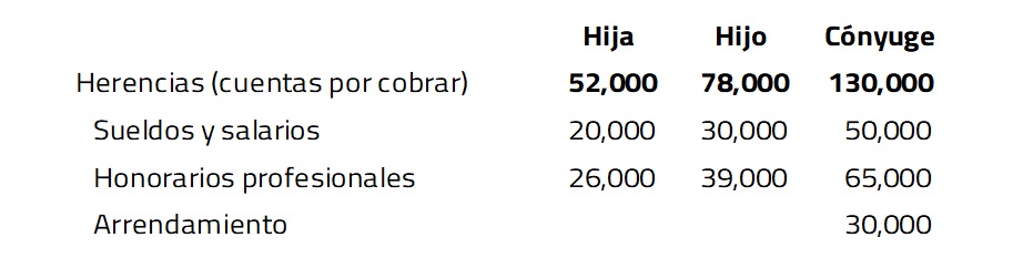 En este caso, los herederos no reconocen los ingresos de 20X1 y sólo presentan los datos informativos en su declaración anual en la proporción que les corresponde, como se muestra a continuación: