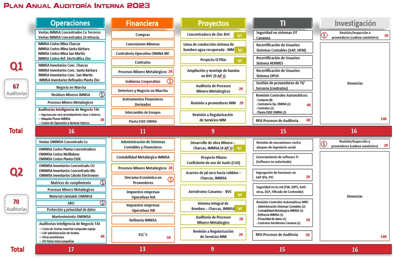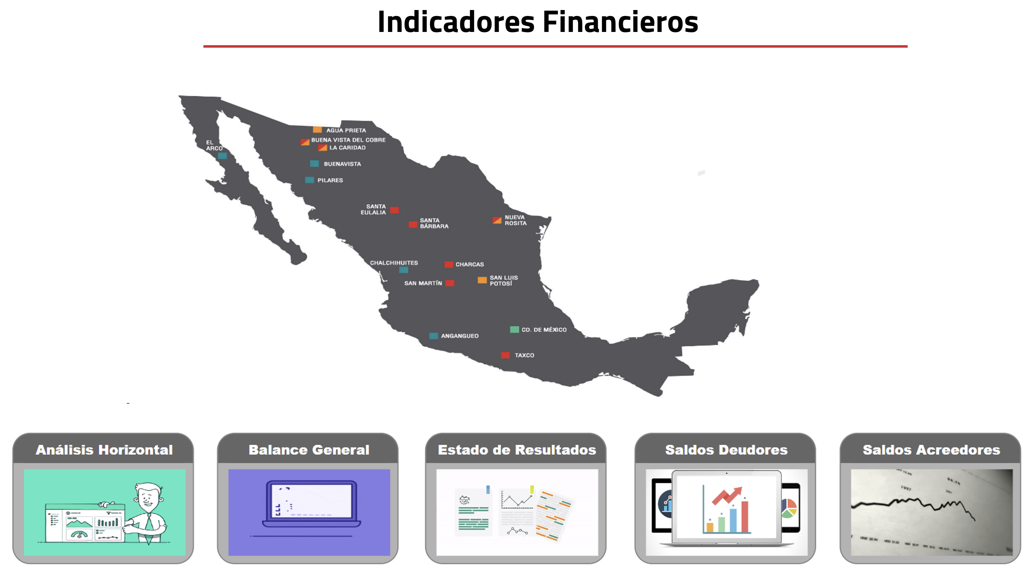 Para efectos del presente boletín, se muestran los Tableros de Auditoría Interna (TAI) de Estados Financieros, Análisis Horizontal, Detalle de Ventas y Benchmark de Costos de Producción de todos los países donde se tiene operación en la División minera de Grupo México.