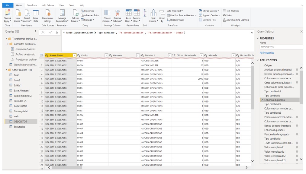 Construcción del indicador: con el 100% de los artículos de todos los almacenes de todas las compañías en todas las ubicaciones operativas, obtener los movimientos de los últimos años, con la finalidad de identificar entradas y salidas de cada artículo con número de stock.