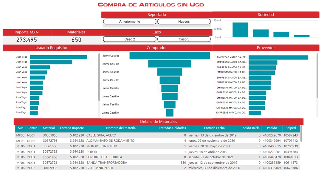 Reporte de resultados: se realiza un TAI en BI que muestre los casos donde no exista razón de negocio, excluyendo los falsos positivos, como son: materiales de emergencia y demás artículos autorizados o solicitados por la Dirección de operaciones.