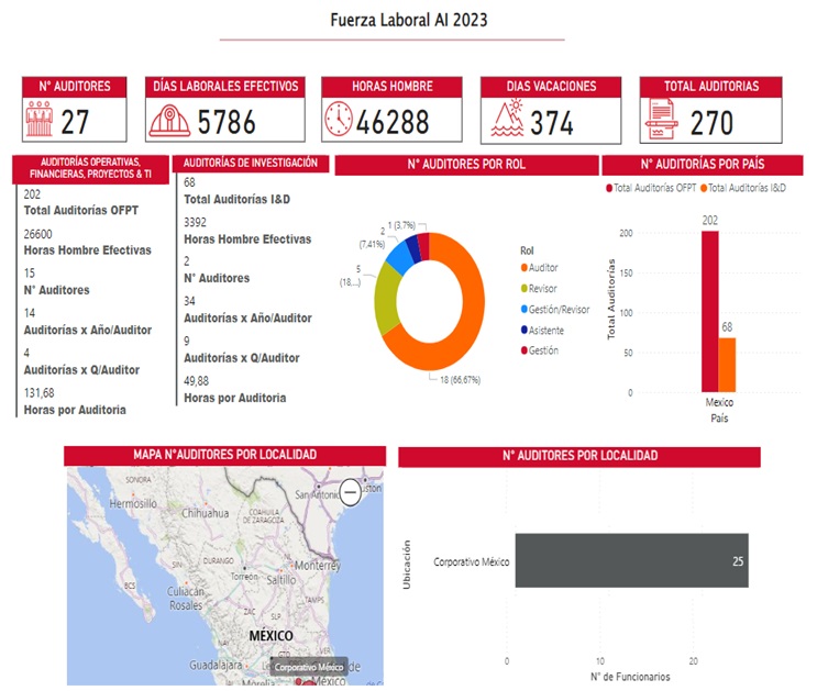 El TAI de Fuerza laboral sirve para conocer en horas la capacidad del equipo de trabajo, es decir, de las personas que forman parte del equipo, considerando vacaciones, capacitación, días festivos, fines de semana y cualquier otro evento ponderable en la determinación de horas disponibles para compromisos de auditoría interna.