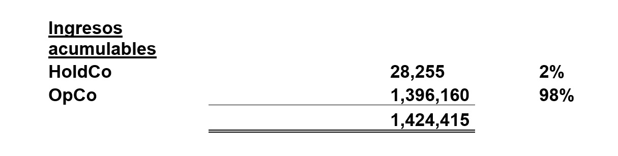 Por tanto, los intereses devengados a cargo, sujetos a la limitante de deducción serán los equivalentes al importe de $30,141 (intereses OpCo: $49,731, menos intereses deducibles sin restricción: $19,590).