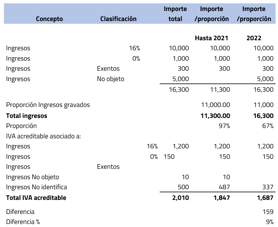 Hasta el punto anterior, lo que no se contemplaba en la proporción del IVA acreditable eran las actividades no afectas al IVA, por lo tanto la proporción de IVA no acreditable sólo se presentaba en aquellos contribuyentes que tenían actividades exentas conforme a la Ley del Impuesto al Valor Agregado (LIVA), situación que cambió con la incorporación a este factor de los actos no afectos, los cuales vienen a sumar a otro grupo de contribuyentes o sectores de la economía a esta mecánica, que trae como consecuencia una erogación adicional en sus costos o gastos.