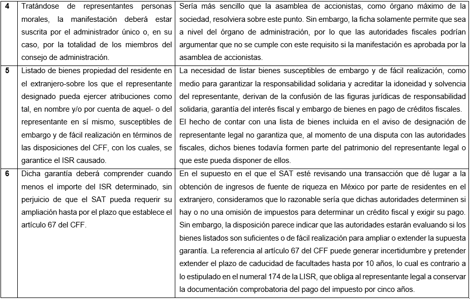 1Miguel Rodríguez Bravo y José I. Pizarro-Suárez, agosto 2022, Representantes legales de residentes en el extranjero: Nuevo aviso de designación y problemas prácticos, Puntos Finos, pág.65-66.Por otro lado, y en sintonía con la iniciativa, el párrafo primero del artículo 174 de la LISR, a la letra, dice: