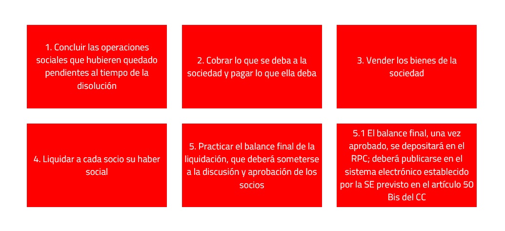 Por otro lado, la Ley General de Sociedades Mercantiles (LGSM) menciona en su artículo 234.° que, disuelta la sociedad, se pondrá en liquidación.
