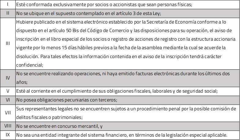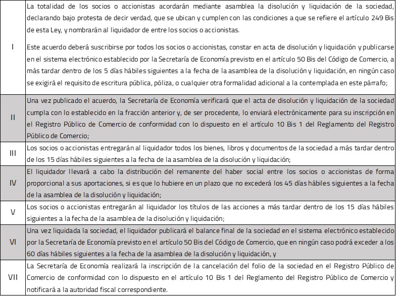 Recordemos que en el Diario Oficial de la Federación (DOF) del 24 de enero de 2018 se publicó el Decreto por el que se reforman y adicionan diversas disposiciones de la LGSM, incorporándose la denominada "disolución y liquidación simplificada", con base en las siguientes consideraciones del sitio Infosen: