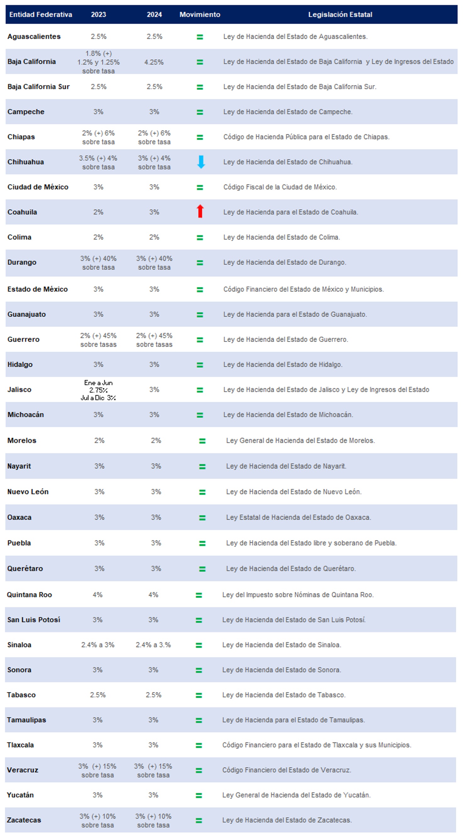 Para 2024, los siguientes estados modifican su tasa para la determinación del impuesto: