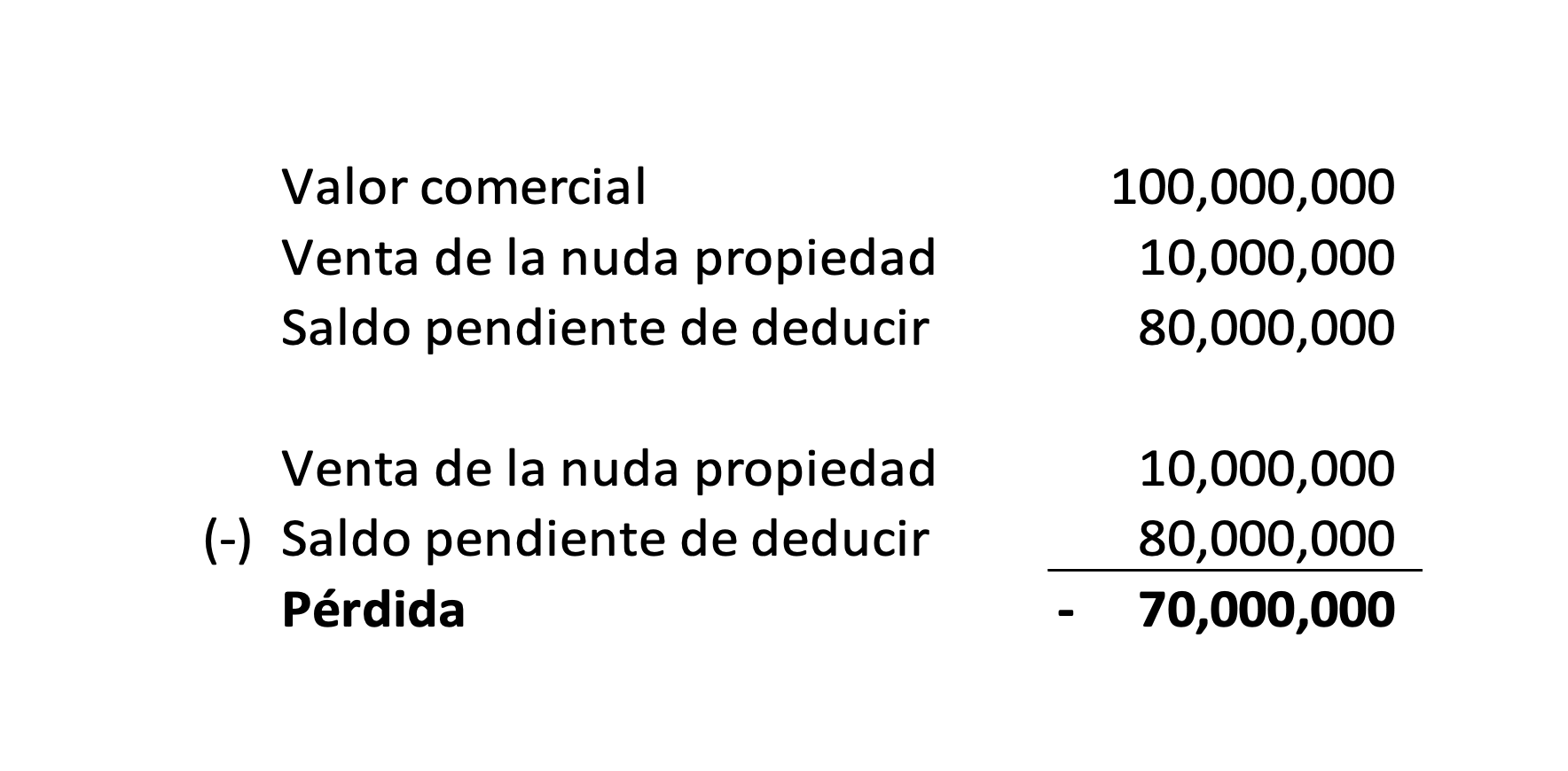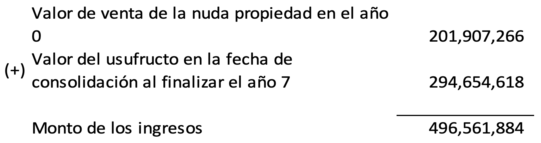 El usufructo a 7 años asciende a $125,486,734, por lo que la nuda propiedad tendría un valor de enajenación de $201,907,266.